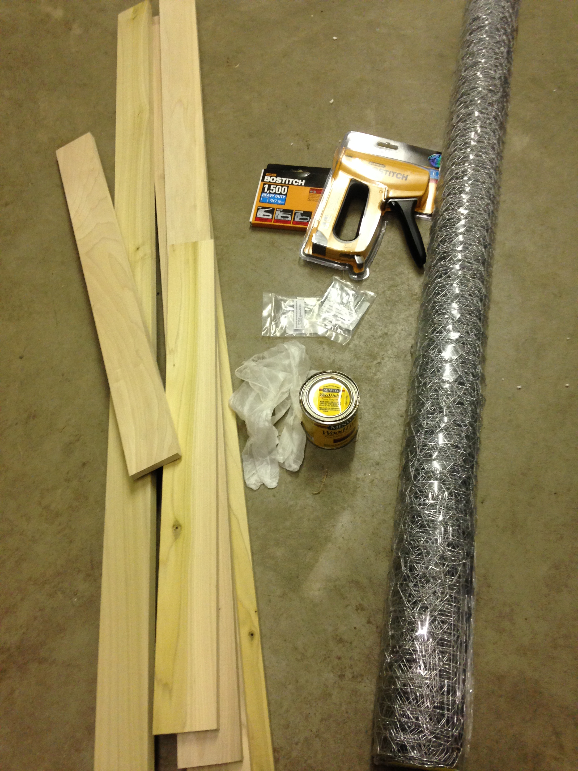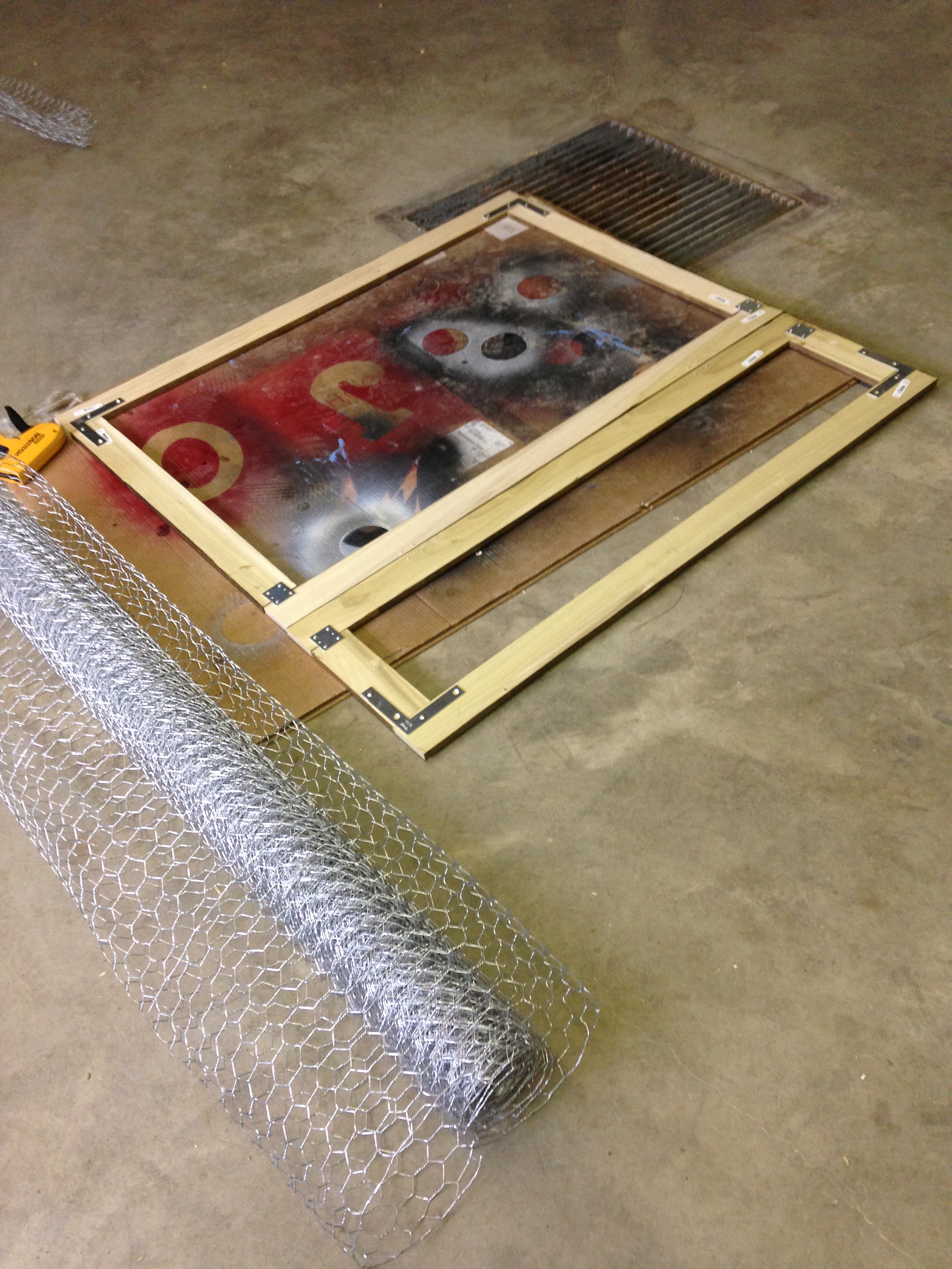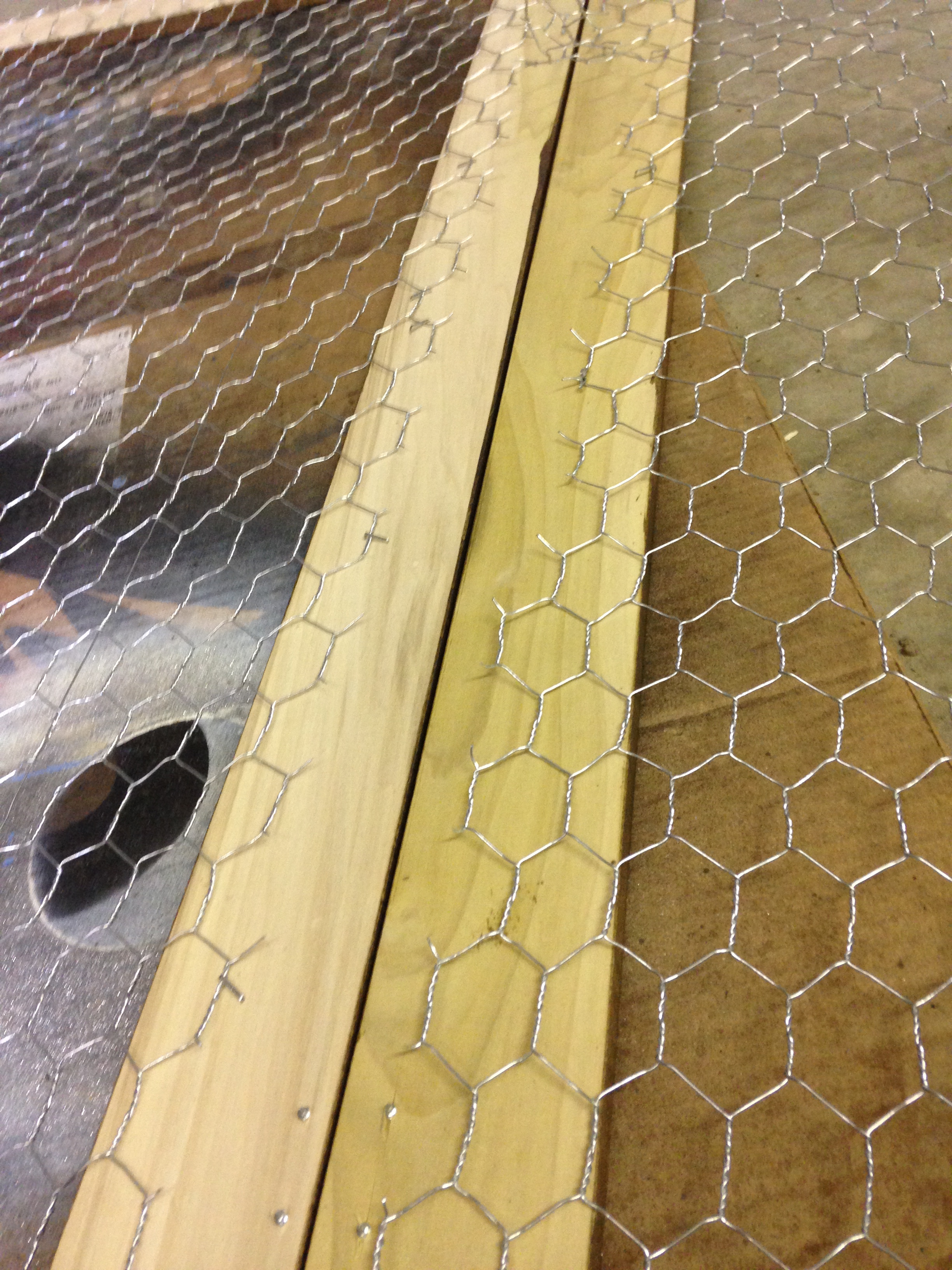 I stapled the chicken wire down to half of the frame, while pulling the wire tight, I stapled the remainder of the frame.