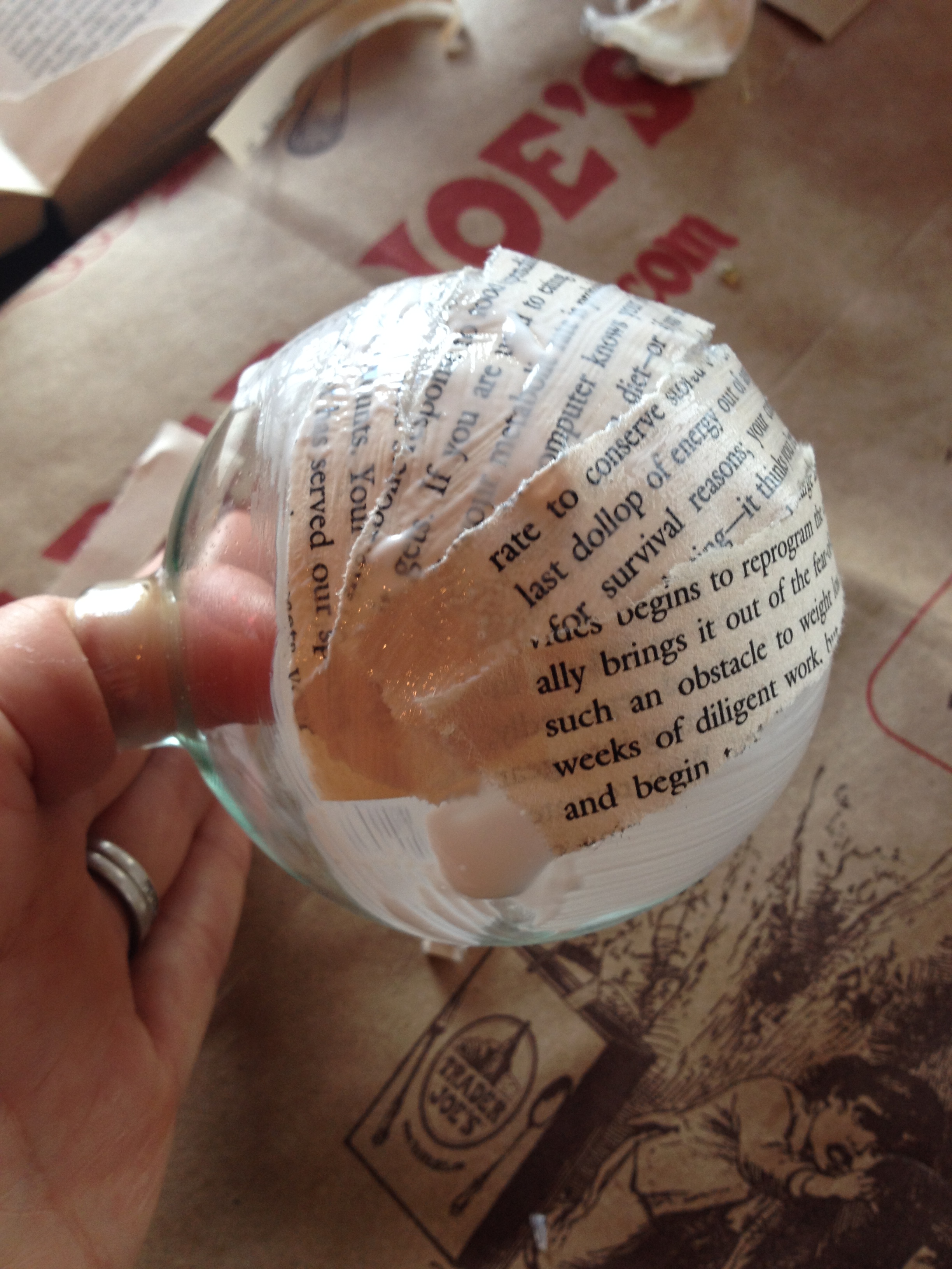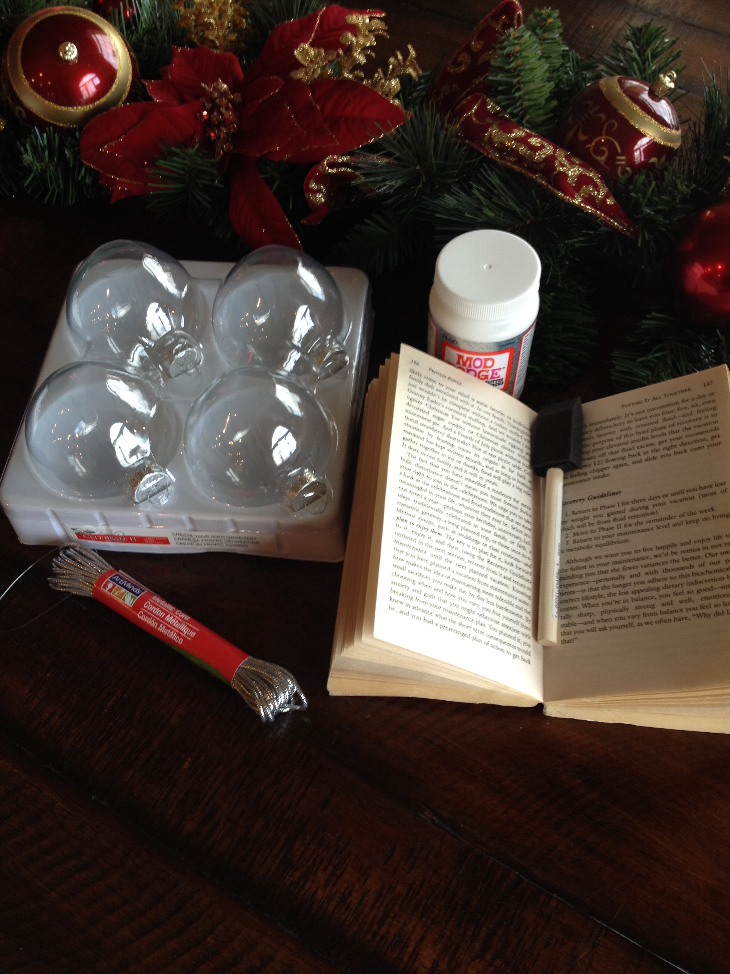 It may sound silly but one of my favorite gifts to give and receive is bowl fillers. I love them! Williams Sonoma and Crate and Barrel have especially awesome ones, for a not-so-awesome price! So for day 6 were making homemade Mod Podged glass ornament bowl fillers. Using a favorite book, verse or child’s artwork will personalize these for years to come.