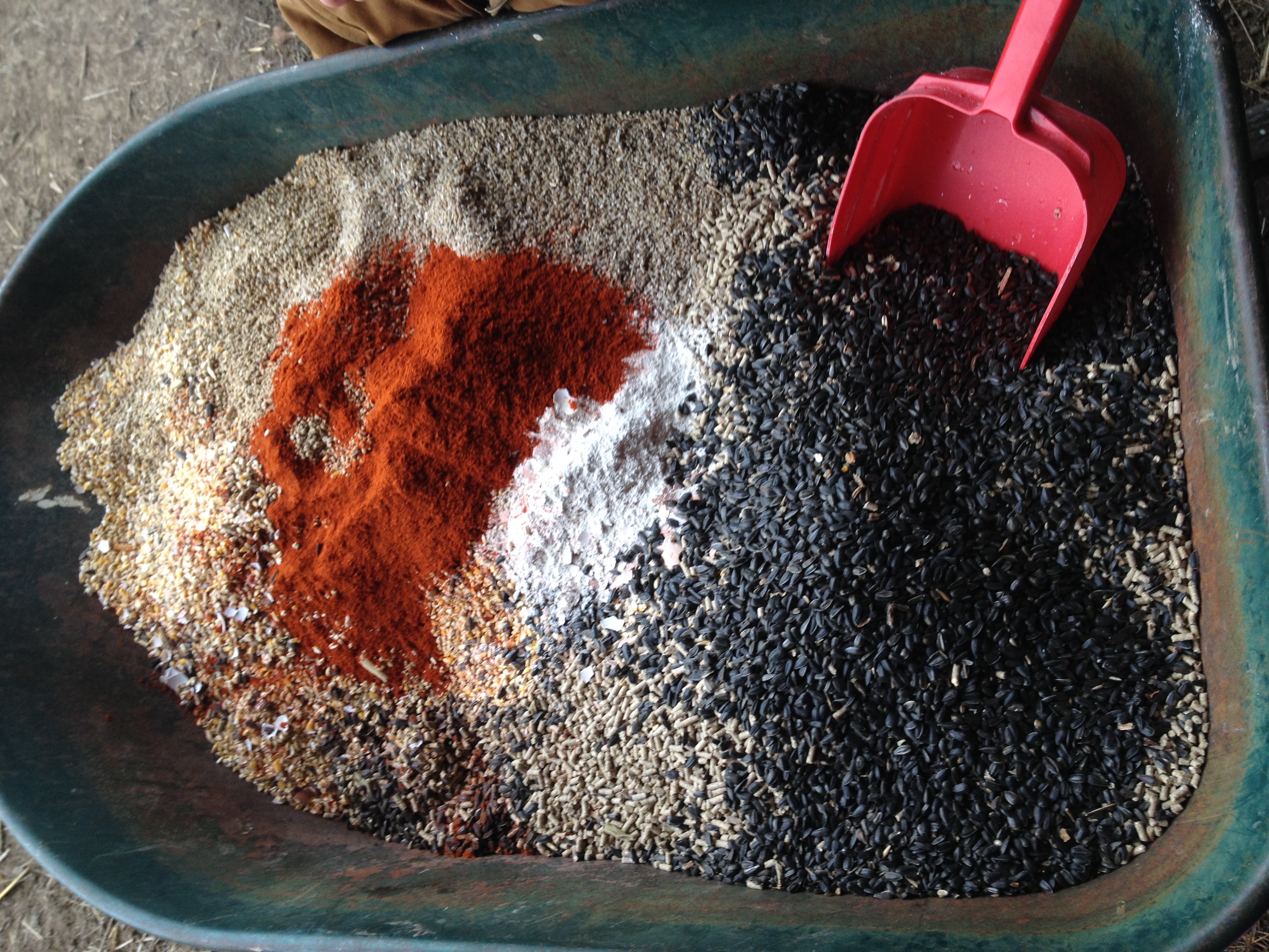 Here in the Pacific Northwest where it gets down into the single digits (sometimes into the negatives) during winter, then I do add in corn for extra energy as well as Cayenne pepper for heat.