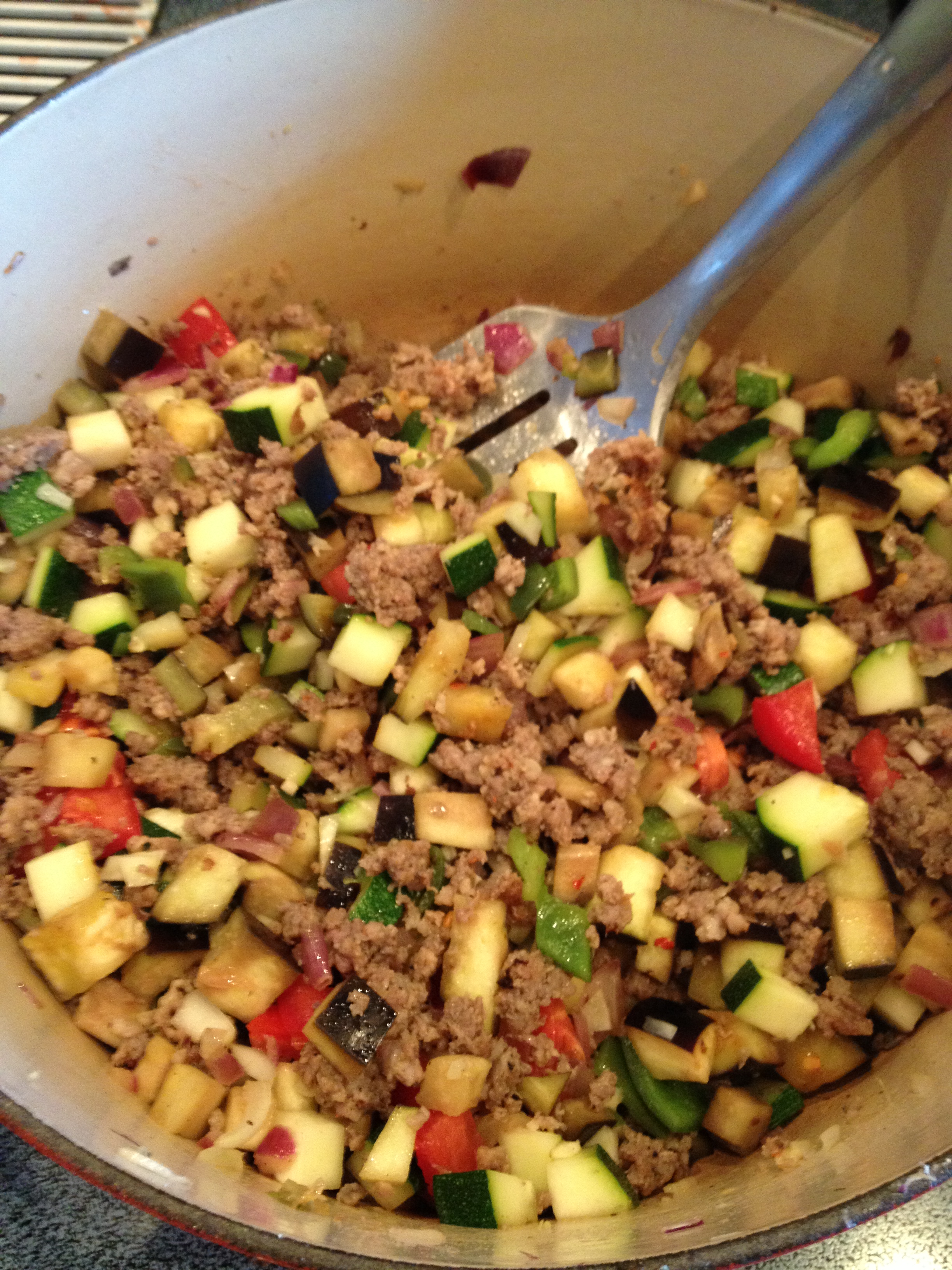 In an oven proof kettle, such as a Le Creuset, (fyi, do not make jam in your Le creuset, see pix) brown sausage. Remove to a bowl using a slotted spoon and set aside. In the sausage juices and fat, sauté onions, eggplant, fennel and zucchini until lightly softened, about 20 minutes. Add back in sausage and the marinara and garlic. Simmer on low for 10 minutes; add cream cheese, stir and combine. Sprinkle top with fresh grated parmesan, cover and bake for 30-45 minutes. (Or until you’re starving kids drive you nuts)