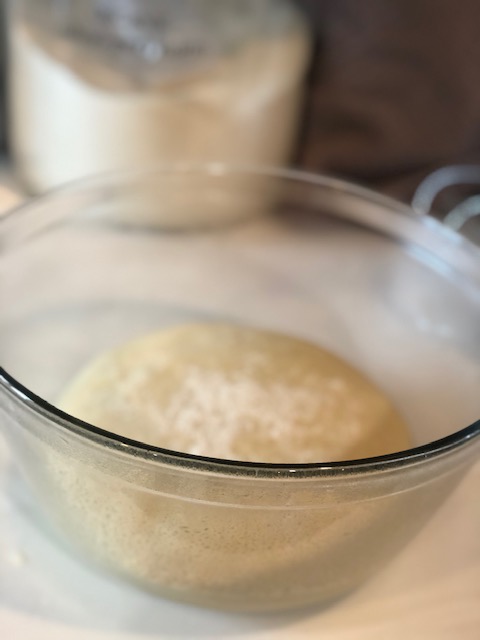 - Place dough in a greased glass bowl.